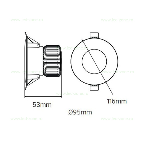 | Dimensiuni / Gaura montaj | ⌀116x53mm / ⌀95mm | |