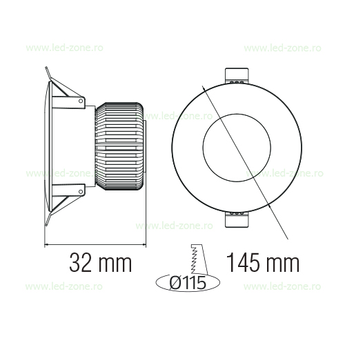 | Dimensiuni / Gaura montaj | ⌀145x32mm / ⌀115mm |