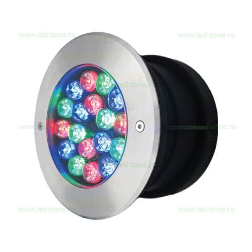 Descriere Spot LED Exterior Incastrabil 18x1W Rotund RGB 12V Submersibil