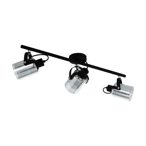 Plafonieră BERREGAS 99054, E27, 3X40W, IP20, oțel, negru, crom, sticlă aburită, negru transparent