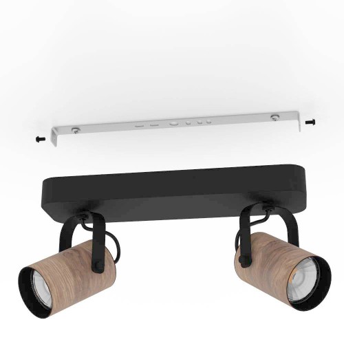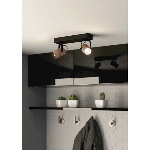 Plafonieră CAYUCA 900437, GU10, 2X3W, IP20, oțel, negru, lemn, maro