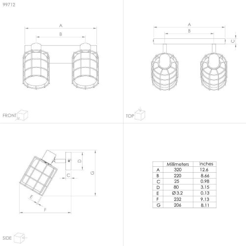 Plafonieră spot CONSACA 99712, E27, 2X40W, IP20, oțel, negru, sticlă aburită, negru transparent