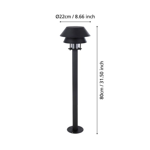 Stâlp exterior CHIAPPERA 900803, H800 mm, Ø220 mm, E27, 1X40W, IP65, oțel, negru, alb, sticlă transparentă