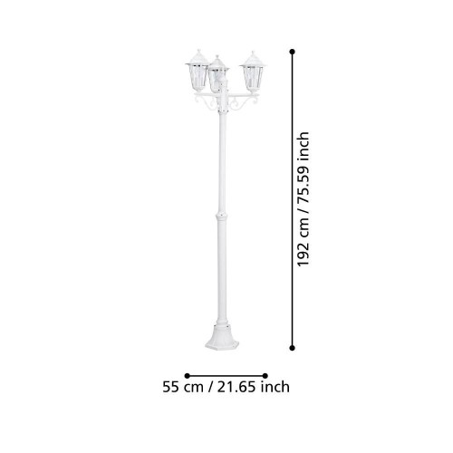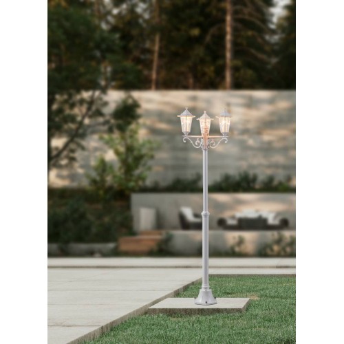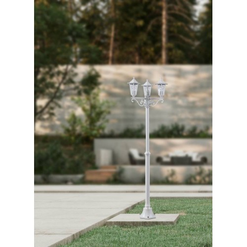 Stâlp exterior LATERNA 5 22996, H1920 mm, Ø535 mm, E27, 3X60W, IP44, aluminiu turnat, alb, sticlă transparentă