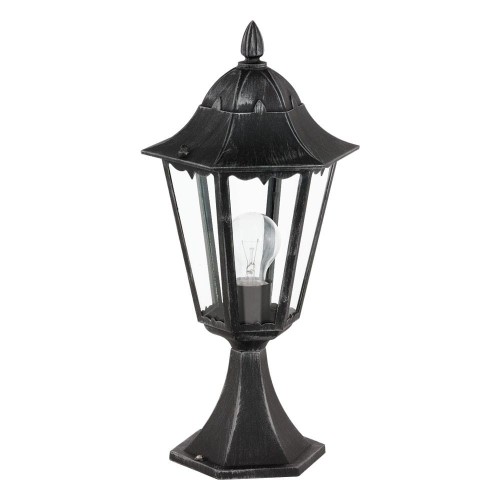 Stâlp exterior NAVEDO 93462, H470 mm, Ø230 mm, E27, 1X60W, IP44, aluminiu turnat, negru, patină argintie, sticlă transparentă