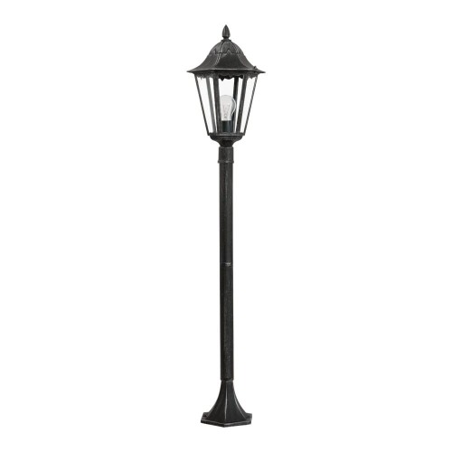 Stâlp exterior NAVEDO 93463, H1200 mm, Ø230 mm, E27, 1X60W, IP44, aluminiu turnat, negru, patină argintie, sticlă transparentă