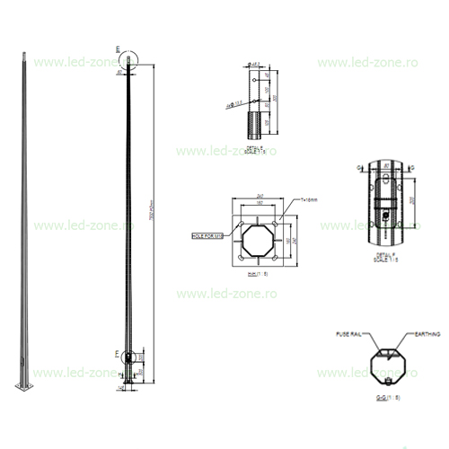 Specificatii Stalp Iluminat Octogonal Galvanizat 8M cu Flansa 160/240 2B