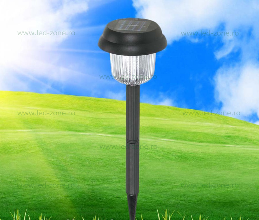 Stalpul LED de gradina solar are un design placut ce pune in valoare zonele de iluminat, oferind o lumina alb rece. Acesta prezinta rezistenta sporita la intemperii.