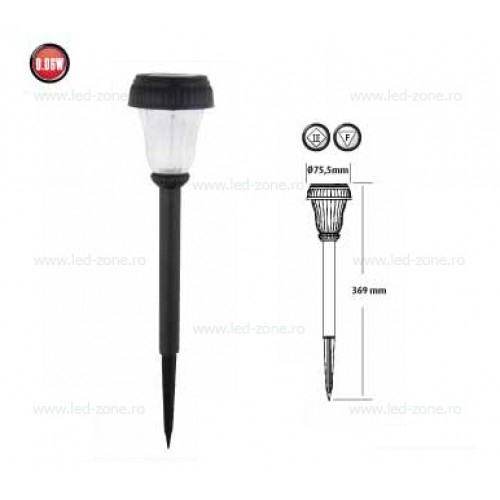 Stalpul LED de gradina solar are un design placut ce pune in valoare zonele de iluminat, oferind o lumina alb rece. Acesta prezinta rezistenta sporita la intemperii.