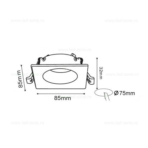 Specificatii Suport Incastrat 1 Bec Spot LED GU10 Patrat Negru KARANFİL