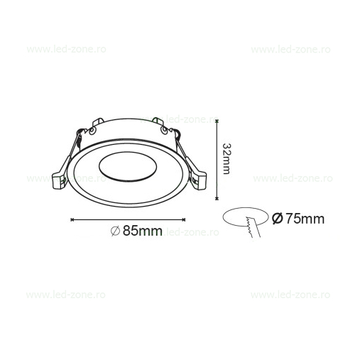 Specificatii Suport Incastrat 1 Bec Spot LED GU10 Rotund Alb KARANFIL