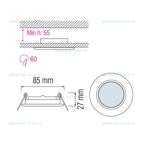 Specificatii Suport Incastrat 1 Bec Spot LED GU10 Rotund ORKIDE