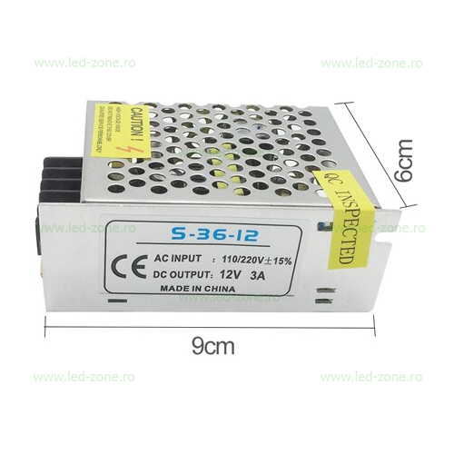 Specificatii Sursa Alimentare Banda LED 12V 36W Carcasa Metal
