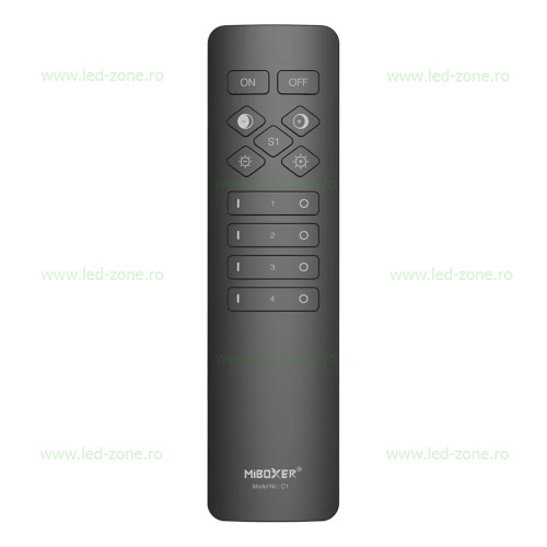 Telecomanda 4 zone MiLight RF CCT C1 este un accesoriu de control avansat, ideal pentru gestionarea iluminatului în diferite spații. Compatibilă cu sistemele de iluminat MiLight / MiBoxer, această telecomandă permite controlul simultan al mai multor zone de iluminat, oferind un control total asupra culorii și temperaturii de culoare ale lămpilor LED.