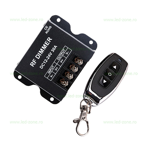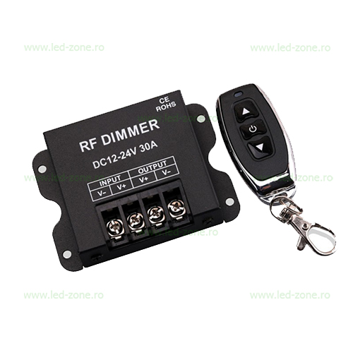 Variatorul, dimmerul, permite reglarea intensitatii luminii benzilor LED cu putere maxima 360W, cu ajutorul telecomenzii cu taste.
