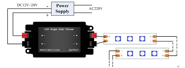 Variatorul se foloseste in circuite de benzi LED cu o singura culoare astfel: Banda LED SMD 5050 60 LED/ml; Banda LED SMD 3528 60 LED/ml etc.