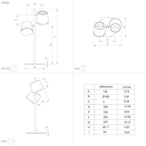 Veioză ALTAMIRA 39986, H505 mm, GU10, 2X4,6W, IP20, oțel negru, alamă, plastic alb