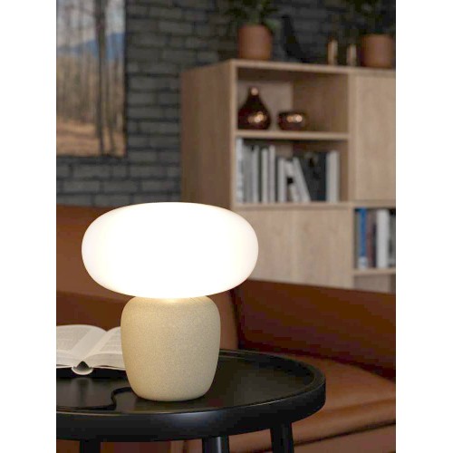 Veioză CAHUAMA 99824, Ø275 mm, E27, 1X40W, IP20, ceramică maro deschis, sticlă albă