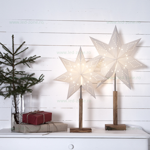 Veioza fantastică de hârtie albă realizată din hârtie de specialitate rezistentă și pendul E14 cu puterea max. 25W. Ea răspândește starea de spirit și oferă casei acel sentiment special de Crăciun. Poate fi așezată pe mobilier.