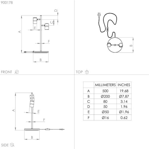 Veioză LURONE 900178, H500 mm, E27, 2X10W, IP20, oțel negru, alamă