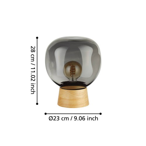 Veioză MAGACELA 390321, Ø245 mm, E27, 1X40W, IP20, lemn, oțel maro, sticlă aburită gri