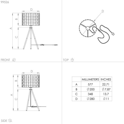 Veioză MARASALES 99526, Ø280 mm, E27, 1X40W, IP20, oțel negru, textil negru, alamă