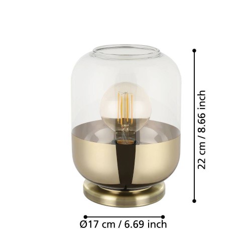 Veioză MARYVILLA 900552, Ø170 mm, E27, 1X40W, IP20, oțel brunat, sticlă aburită transparent, auriu