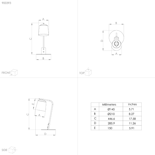Veioză ONEDA 900393, H445 mm, E27, 1X40W, IP20, oțel negru, alb