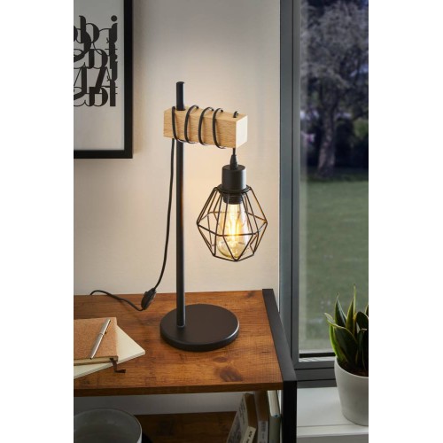 Veioză TOWNSHEND 5 E27 1X60W IP20 500mm 44079, otel, lemn, negru, maro