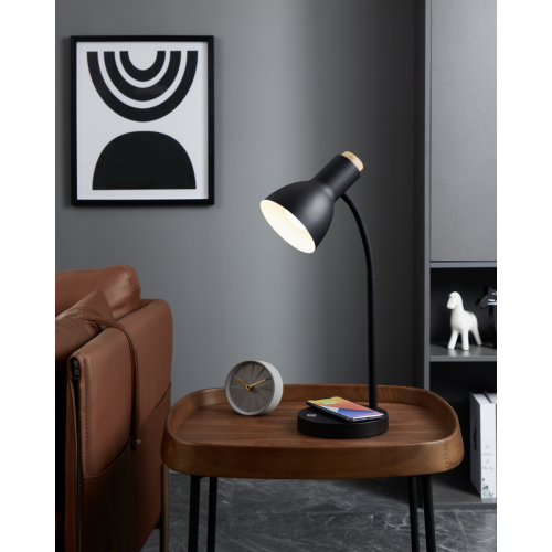 Veioză VERADAL-QI 900628, H450 mm, LED, 5,5W, 3000K, IP20, oțel, lemn negru, maro, oțel negru, crem