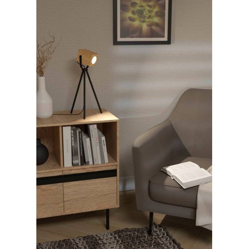 Veioză vintage AYLES 43749, H475 mm, GU10, 1X3W, IP20, oțel negru, lemn maro