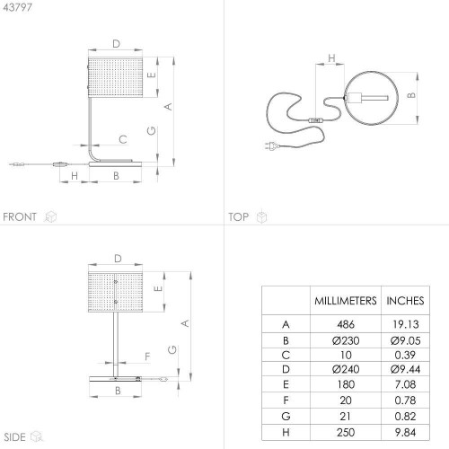 Veioză vintage MANBY 43797, Ø240 mm, E27, 1X40W, IP20, oțel negru