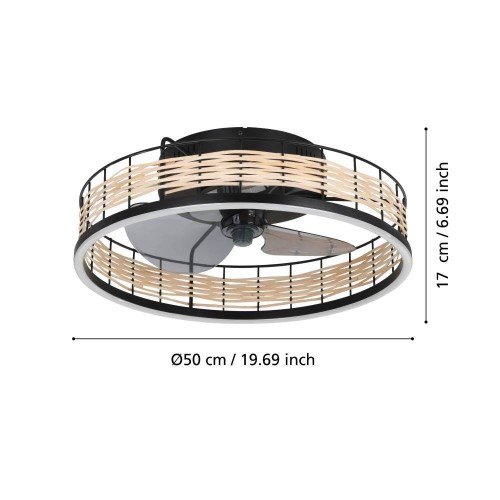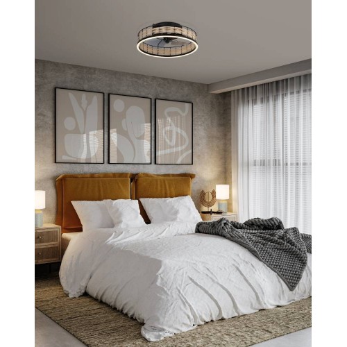 Ventilator plafon cu lumină FRANA 35148, Ø500 mm, LED, 28W, 2700-6500K, abs negru mat, ratan natural